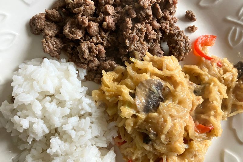 - 1 cooked spaghetti squash